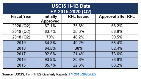 Latest USCIS Data Show RFE Rates Remained High for Key Employer-Sponsored Nonimmigrant Categories in Q2 of FY 2020